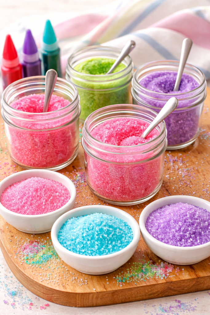 - Small jars or bowls for colored sugar