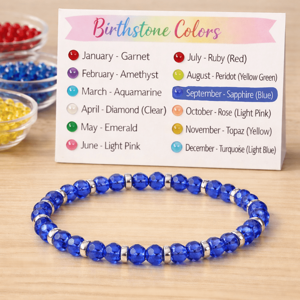 - Birthstone-colored beads