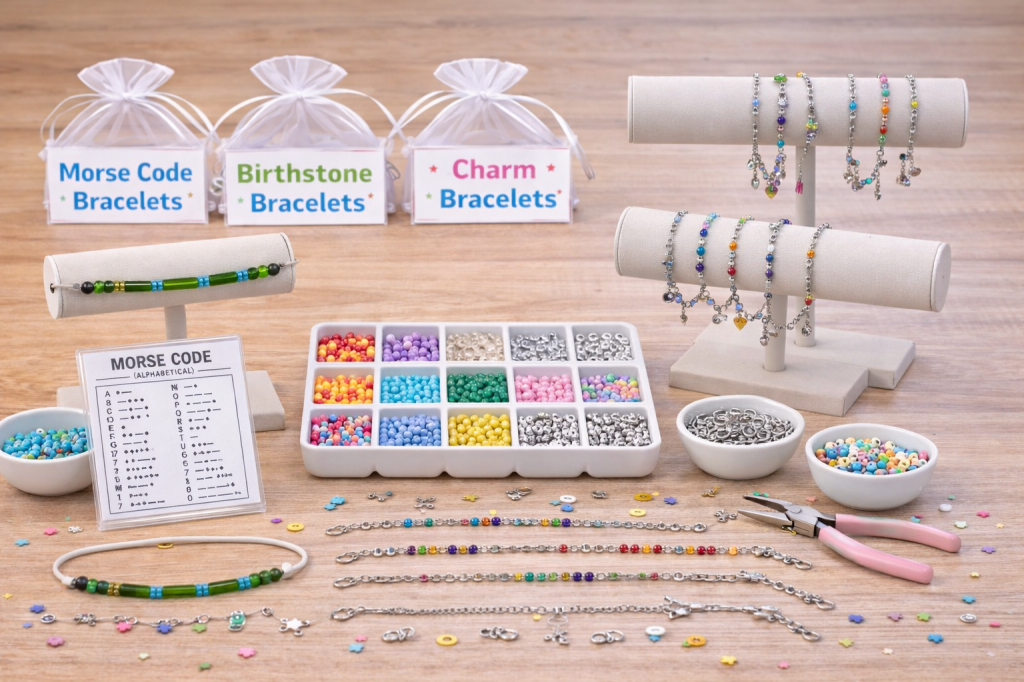 Morse code bracelets are another fun option where kids use beads to secretly spell words like “LOVE,” “BFF,” or their name.