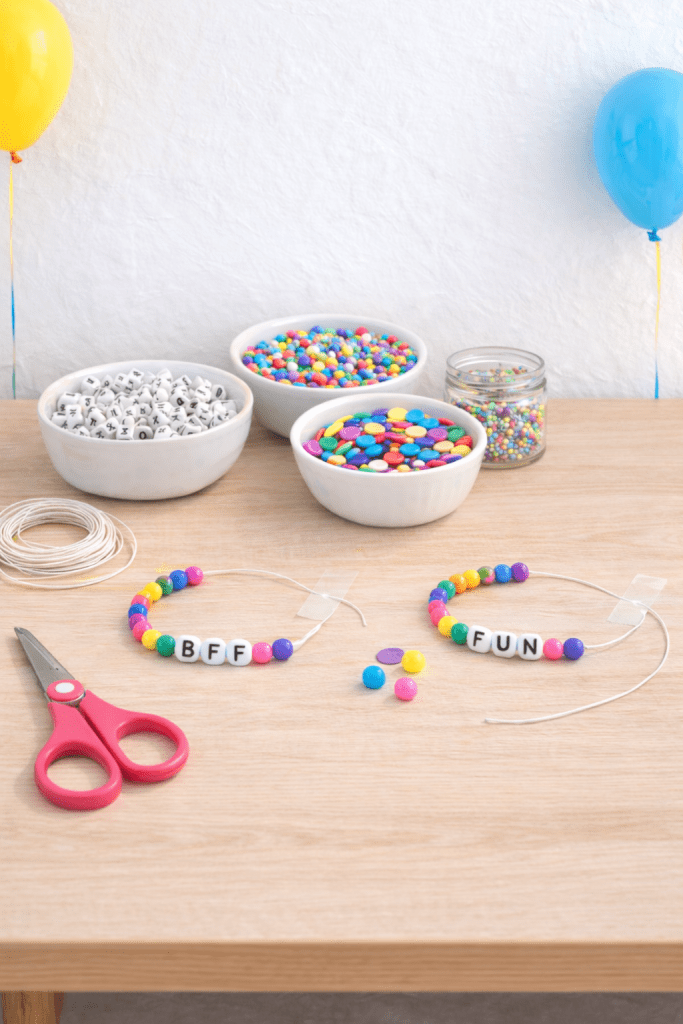 This simple bracelet station is quick to set up and works perfectly for birthday parties, classroom celebrations, or craft activities with friends.